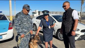 Түстен кейін жұмысымның басым бөлігі есірткі қылмысына қарсы іс- қимыл басқармасы нашақорлықтың алдын алу, ведомствоаралық үйлестіру тобының аса маңызды істері жөніндегі аға жедел уәкілі полиция майоры Бимаханов Марат Асылханұлымен Қызылорда және Жамбыл облыстарының шекара аумақтарында қойылған 2 тосқауыл бекеттерінің бірі – Қызылорда бағытындағы – “Сауран” бекетіне келіп, шілденің аңызақ, аптап күні мен бұрқасын, боран, қалың қарда, яғни ауа райының қолайсыз күніне қарамай өздеріне бекітілген Кинологиялық қызмет орталығының қызметтік иттермен бекетте тұрған тәртіп сақшыларының қатарына қосылып, азынаған желдің өтінде тұрып, есірткі қылмысына жол бермеу мақсатында көліктерді тексеру жұмысын «Нора» атты, есірткі, қару-жарақты анықтайтын итпен бірге 3 сағатқа жуық жүргіздік.
